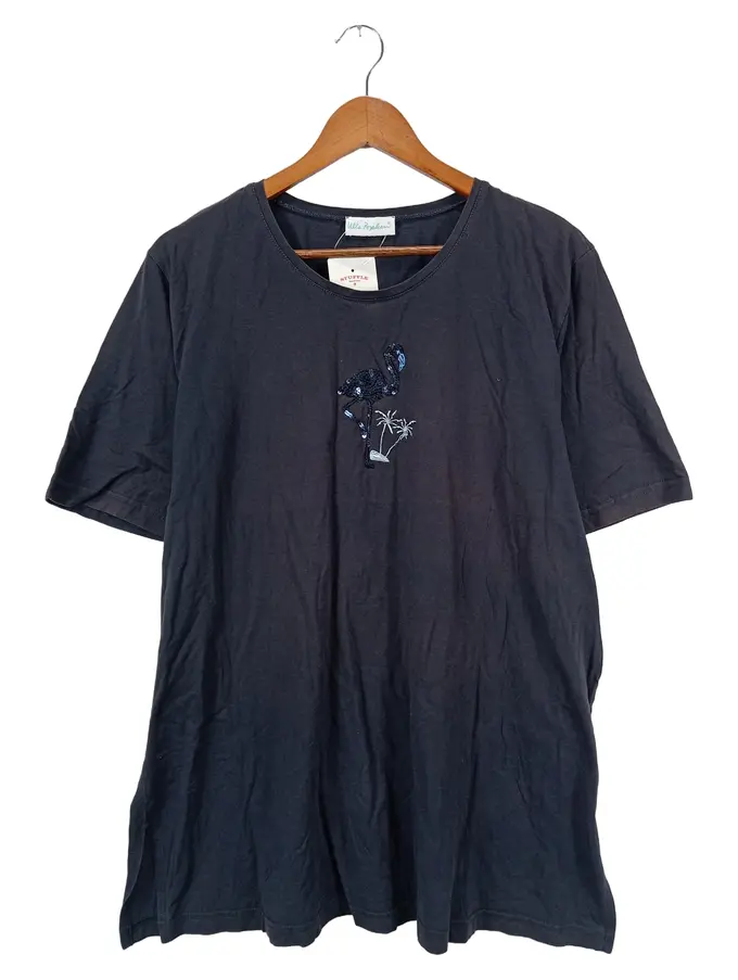 Damen T-Shirt L Schwarz Flamingo Pailletten Casual