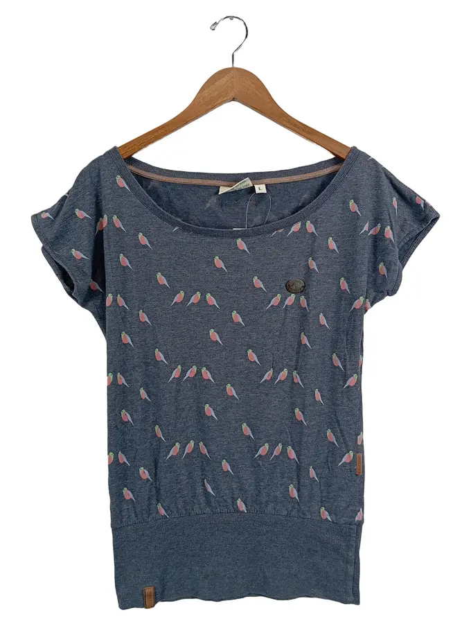 Damen T-Shirt L Vogelmuster Mehrfarbig Casual