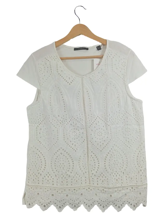 Damen T-Shirt Lochstickerei Weiß Gr. M Baumwolle Feminin