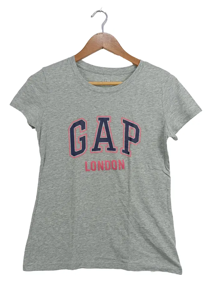 Damen T-Shirt London Logo Grau Gr. XS 34 Baumwolle Casual
