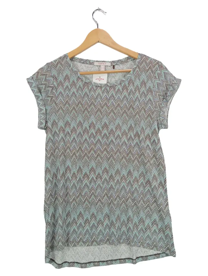 Damen T-Shirt Mehrfarbig Zickzack-Muster Gr. M Casual