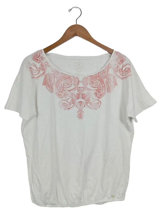 Damen T-Shirt Paisley-Muster Gr. 38/M Weiß Casual
