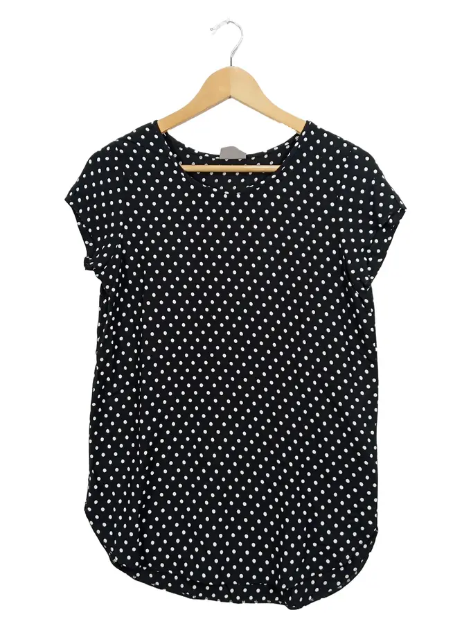Damen T-Shirt Punkte Schwarz Gr. 36/S Viskose Kurzarm Casual