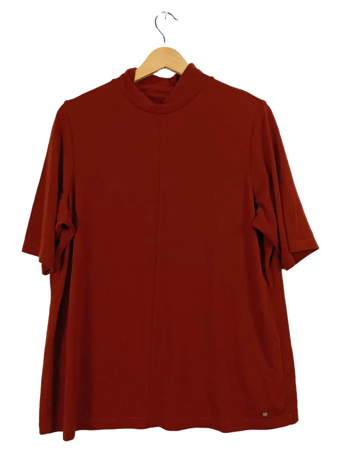 Damen T-Shirt Rollkragen Gr. 46 Rot Casual Kurzarm