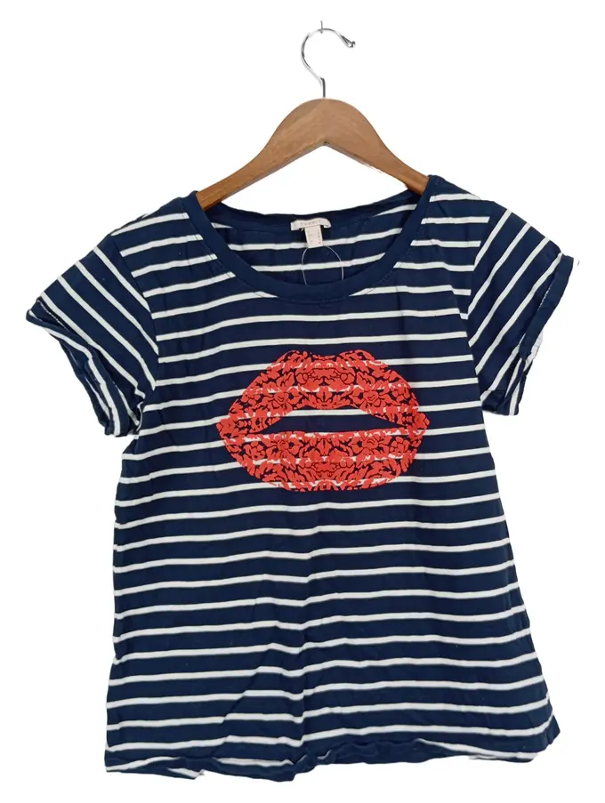 Damen T-Shirt S Gestreift Lippenprint Mehrfarbig