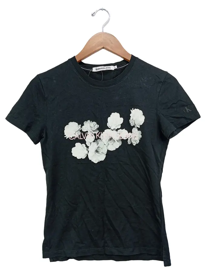 Damen T-Shirt Schwarz Florales Muster Gr. 34/XS Baumwolle