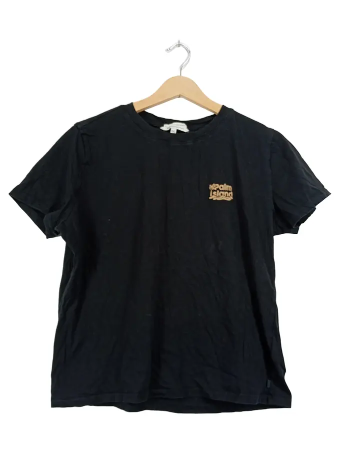 Damen T-Shirt Schwarz Gr. 44/XXL Casual Logo-Print Baumwolle
