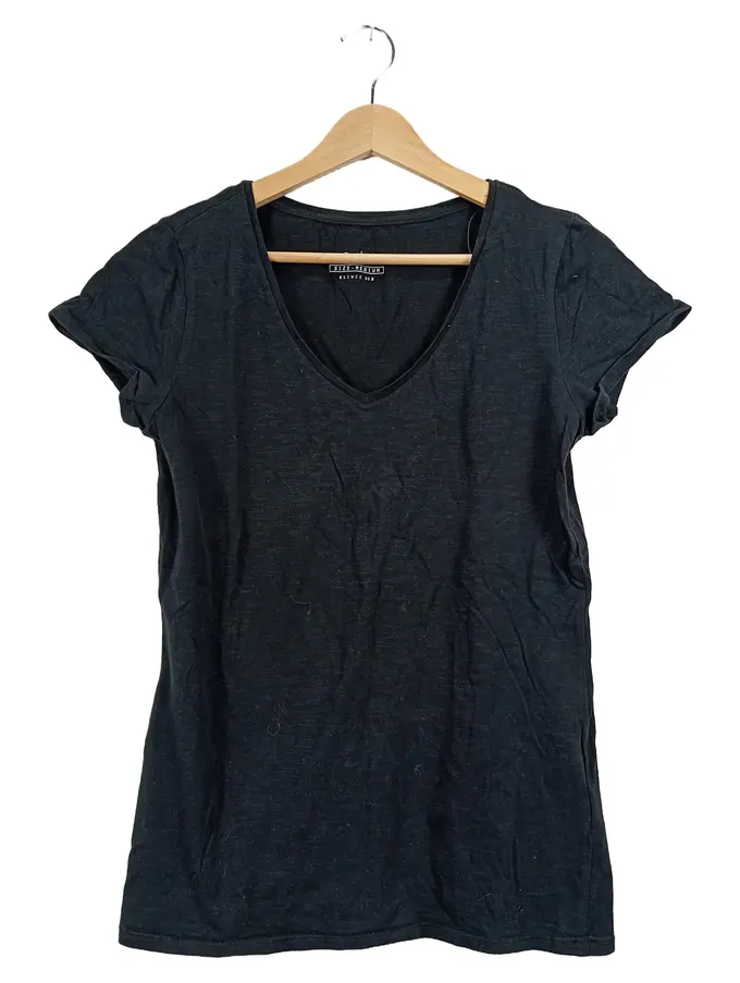 Damen T-Shirt Schwarz V-Ausschnitt Gr. M Basic Baumwolle