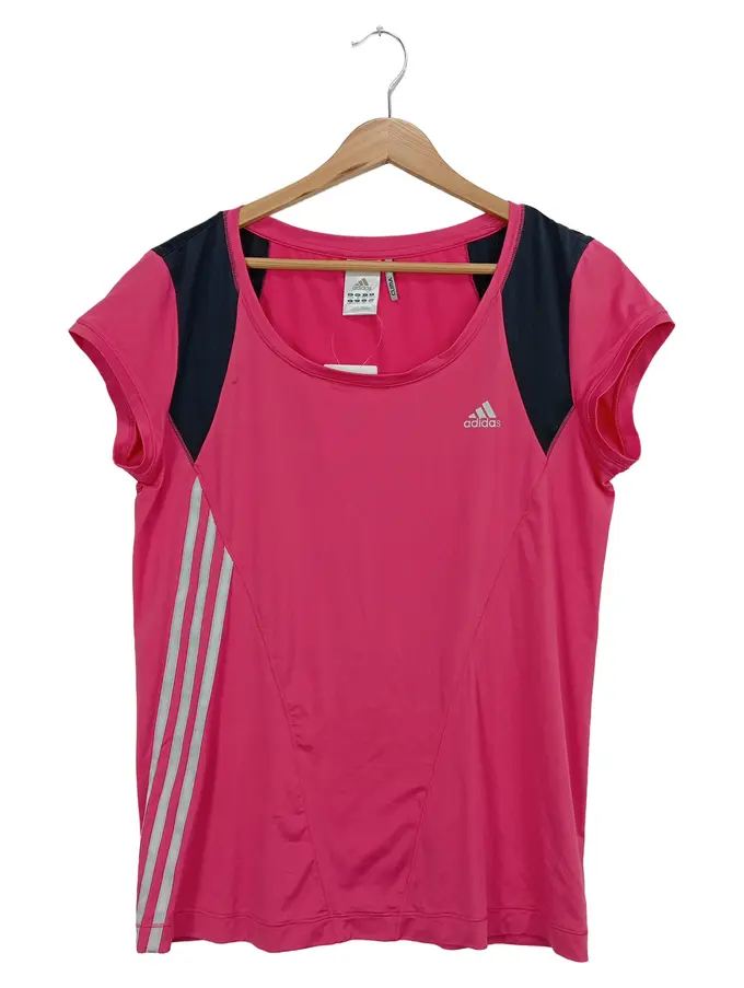 Damen T-Shirt Sportlich Rosa Gr. 38/M Streifen Logo-Print