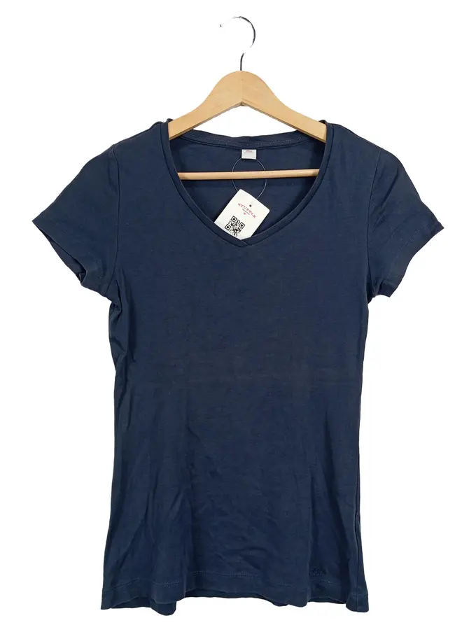 Damen T-Shirt V-Ausschnitt Gr. 38 Blau Basic Kurzarm