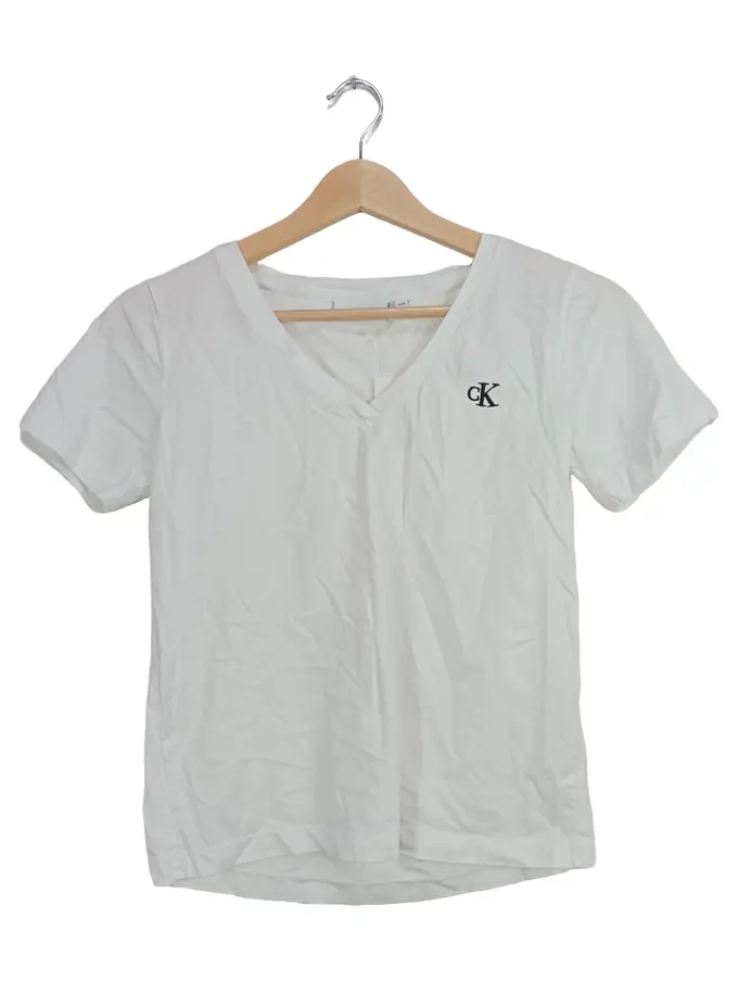 Damen T-Shirt V-Ausschnitt Gr. S Weiß Logo