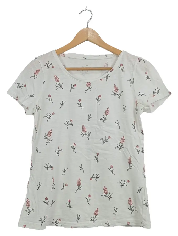 Damen T-Shirt Weiß Blumenmuster Gr. 36 S Kurzarm Baumwolle
