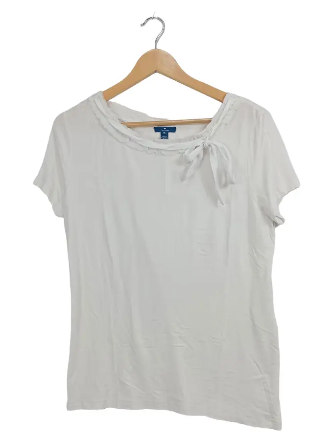 Damen T-Shirt Weiß Gr. 38/M mit Rüschen und Schleife