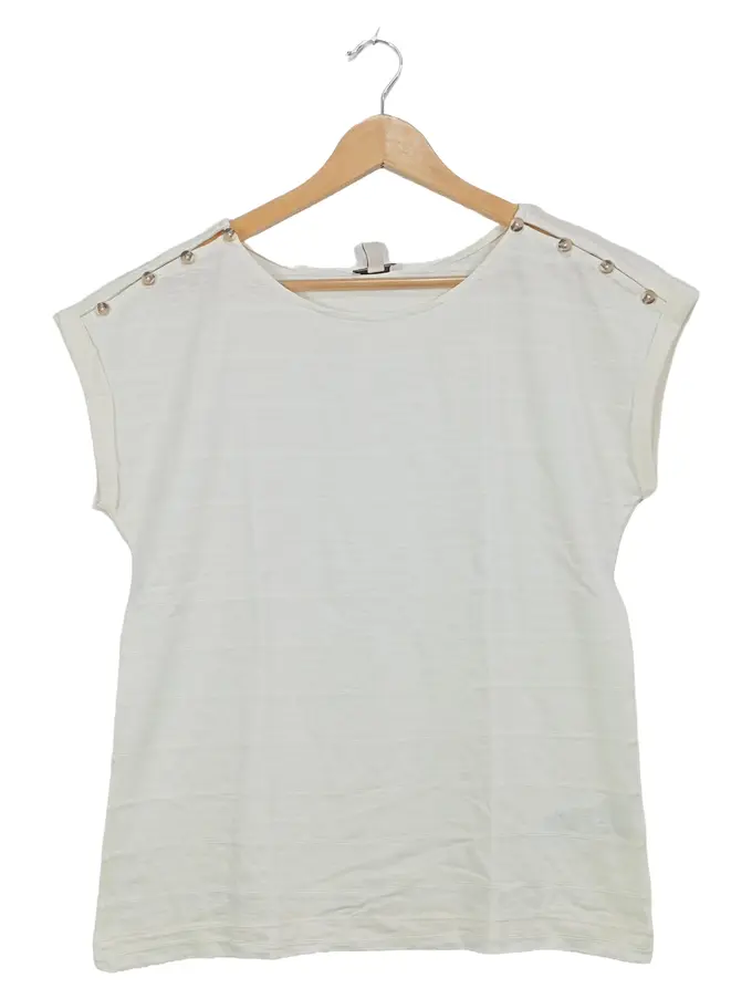 Damen T-Shirt Zierknöpfe Schulter Weiß Gr. M 38 Baumwolle