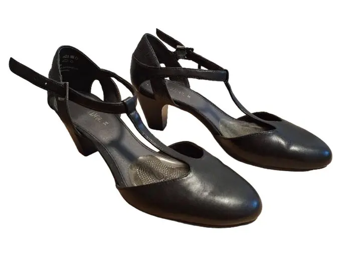 Damen T-Strap Sandaletten Pumps Schwarz Gr. 38 Absatzschuhe
