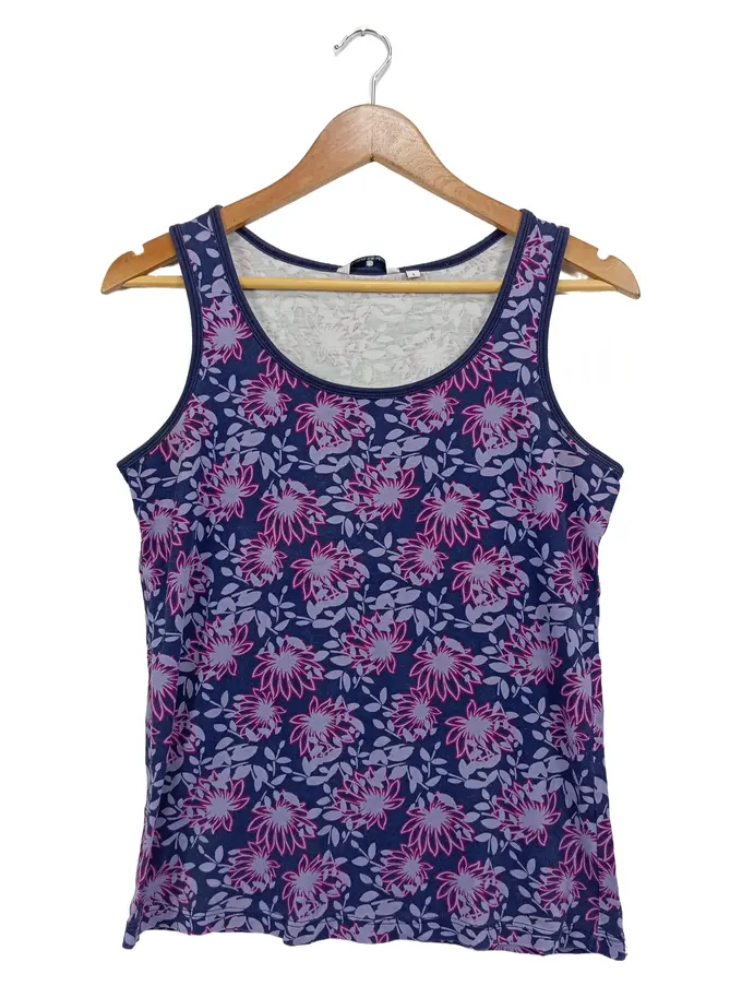 Damen Tank Top Blumenmuster Blau Lila Gr. L Baumwolle