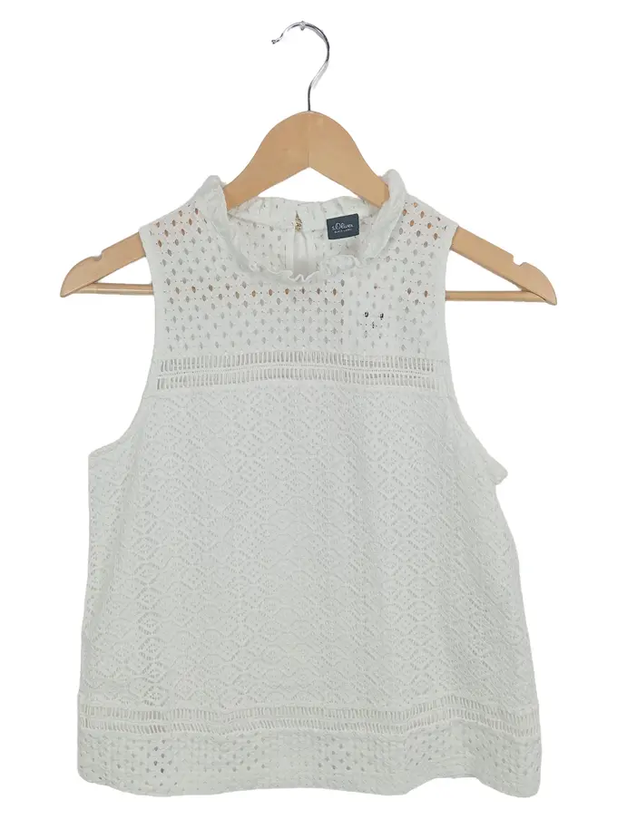 Damen Top 34/XS Weiß Lochmuster Ärmellos Feminin