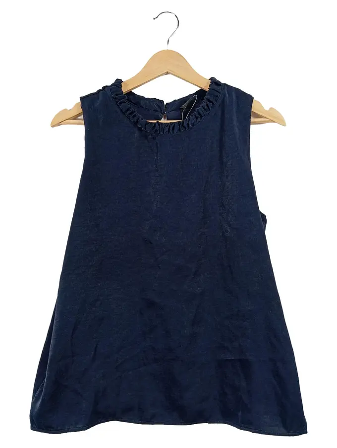 Damen Top Ärmellos Gr. 38 M Blau Rüschenkragen Polyester