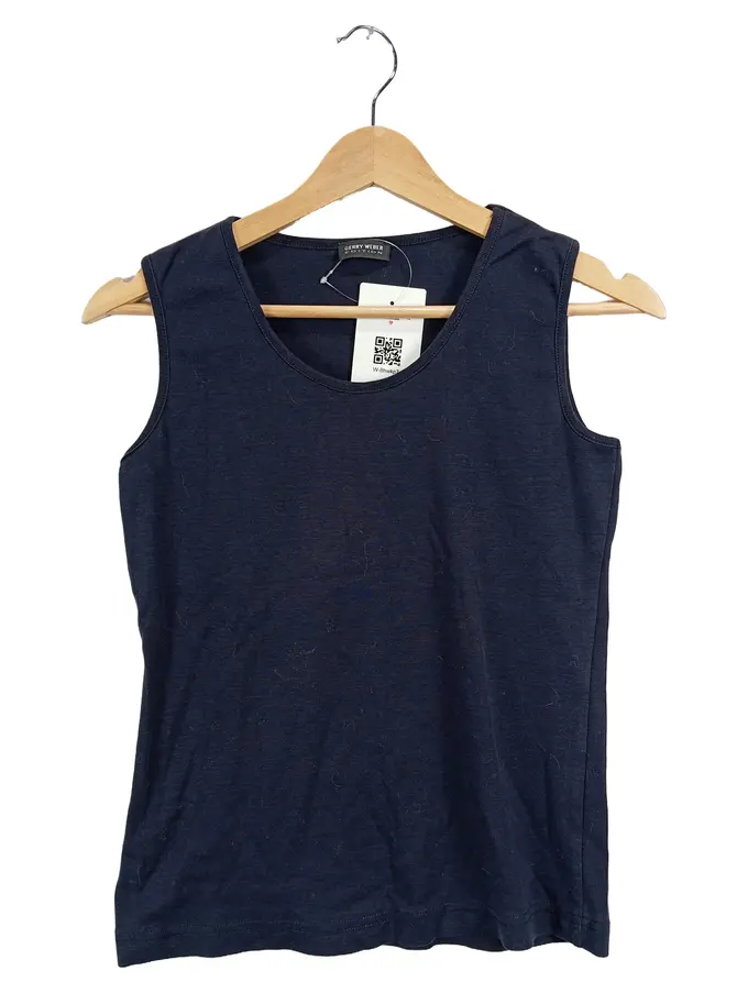 Damen Top Baumwolle Basic Ärmellos Blau Gr. 40 L