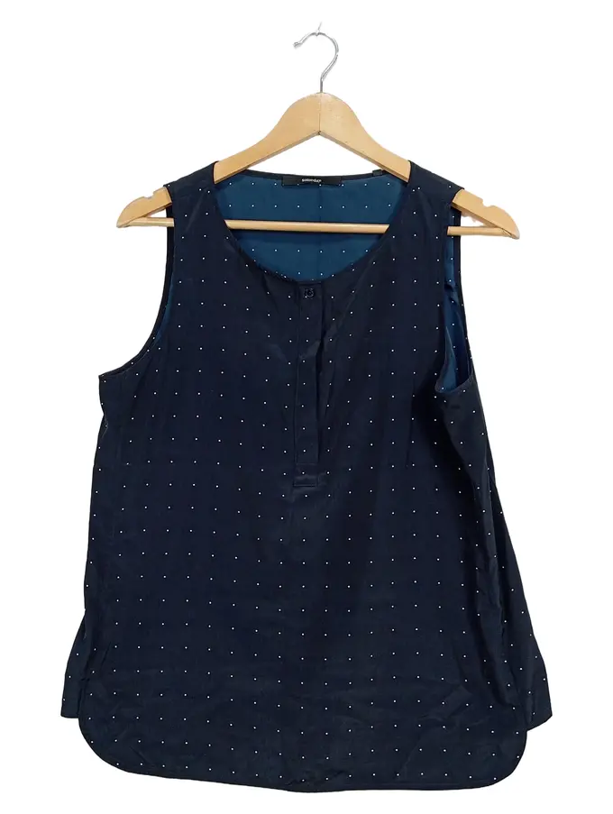 Damen Top Bluse ärmellos Gr. 38 M Blau gepunktet Viskose