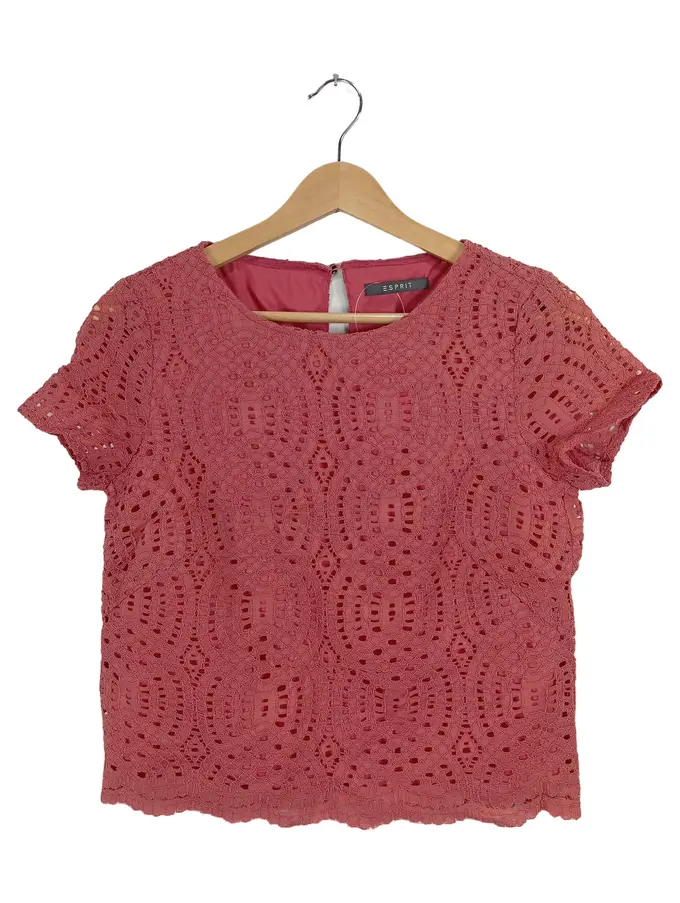 Damen Top Gr. 34/XS Rosa Lochmuster Spitze Kurzarm Feminin