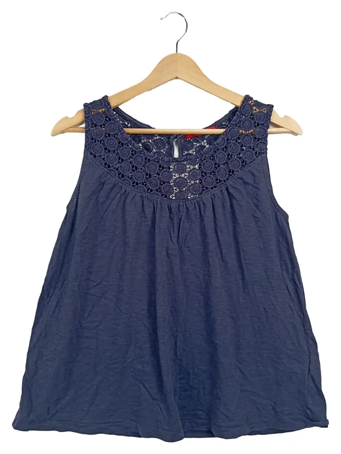 Damen Top Gr. 36/S Dunkelblau Casual mit Häkelei