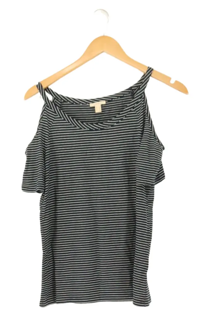 Damen Top Gr. 36/S Schwarz Gestreift Cold Shoulder Casual