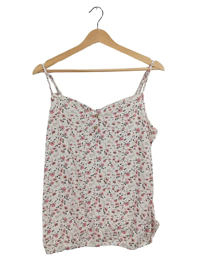 Damen Top Gr. 40/42 Blumenmuster Spaghettiträger Rosa Weiß