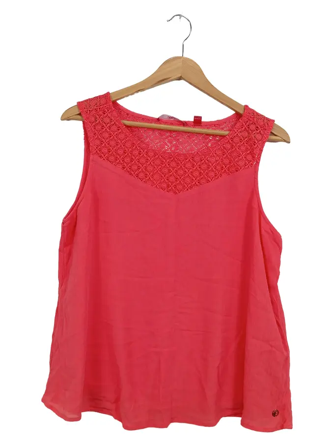 Damen Top Gr. 40 L Rot Feminin Viskose Häkelspitze