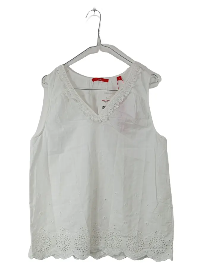 Damen Top Gr. 40 Weiß Baumwolle Lochstickerei Spitze
