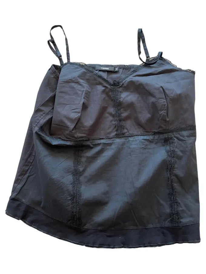 Damen Top Gr. 48 Schwarz Casual mit Spitze