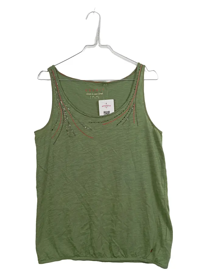 Damen Top Gr. L Oliv Baumwolle Perlen Freizeit Tank Top