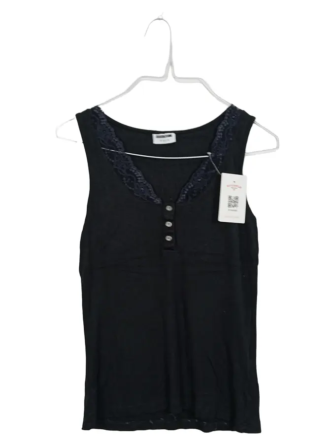 Damen Top Gr. M Schwarz Spitze Knopfleiste Viskose NEU
