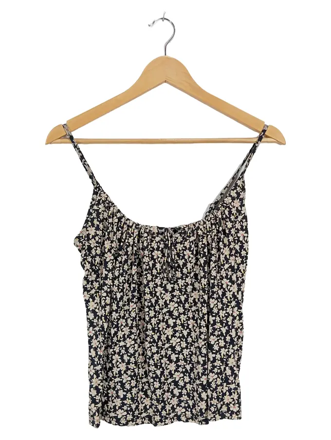 Damen Top Gr. XS Blumenmuster Schwarz Viskose Träger