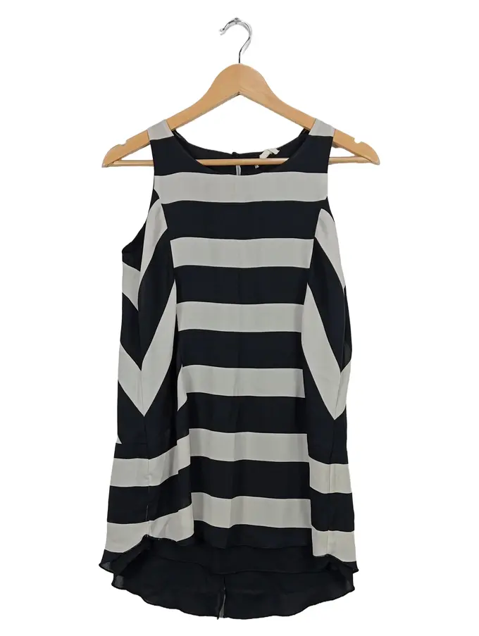 Damen Top Gr. XS gestreift schwarz weiß ärmellos Bluse