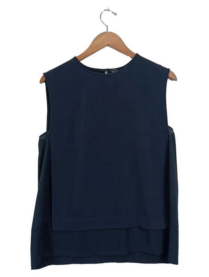 Damen Top Oberteil Gr. 40/L Modern Blau Ärmellos Polyester