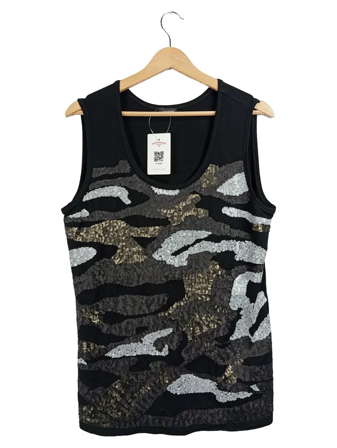 Damen Top Pailletten Camouflage Schwarz Gr. 42