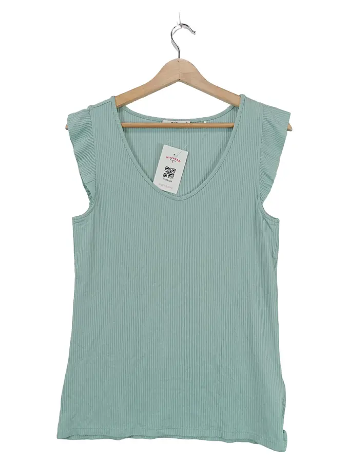 Damen Top Rippstrick Rüschen Ärmellos Türkis Gr. 38 M Neu