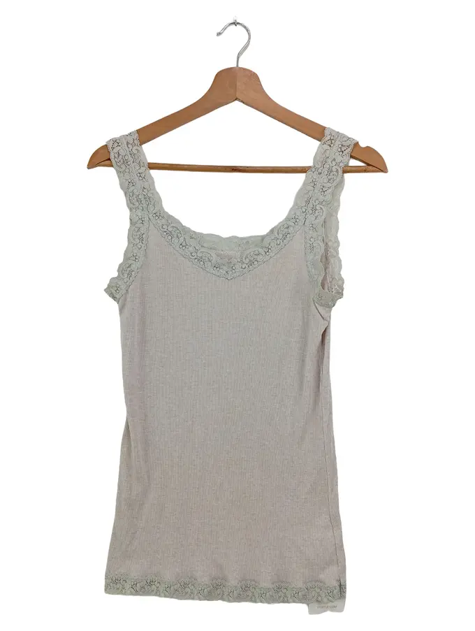 Damen Top Rippstrick Spitze Grau Einheitsgröße Feminin
