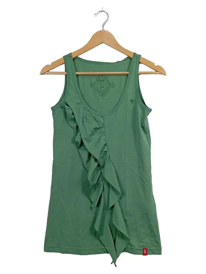 Damen Top Rüschen Grün Baumwolle Gr. XS Feminin