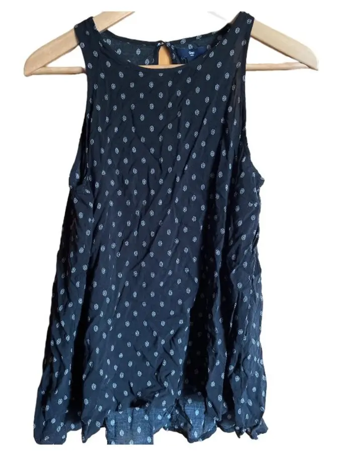 Damen Top Schwarz Gr. 38 M Ärmellos Geometrisches Muster Casual