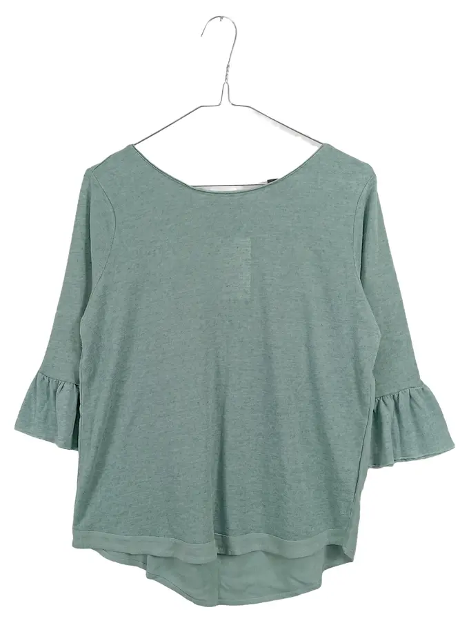 Damen Top Shirt Glockenärmel Rüschen Grün Gr. M