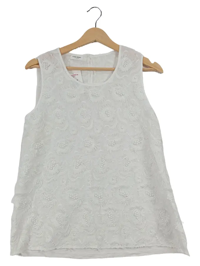 Damen Top Shirt Gr. 40 Weiß Elegant Florales Muster
