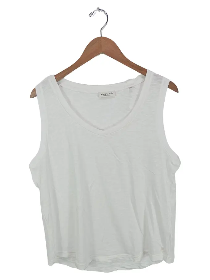 Damen Top Shirt Weiß Baumwolle V-Ausschnitt Gr. 42;XL Casual