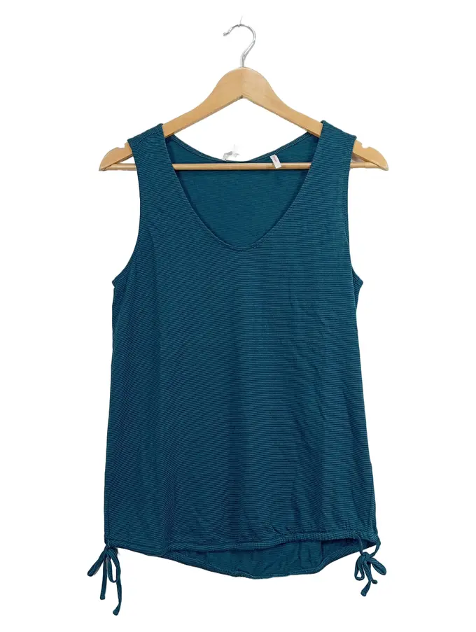 Damen Top Tanktop Gr. 40/L Petrol gestreift Raffung