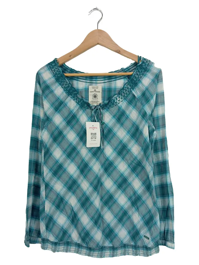 Damen Trachtenhemd Karo Blau Gr. 38/M Baumwolle Casual