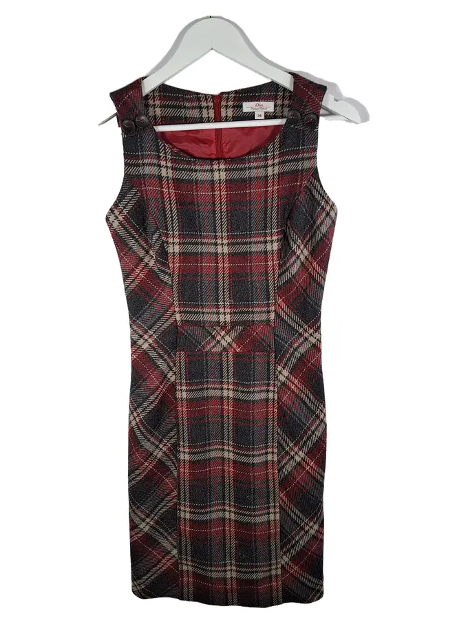 Damen Trägerkleid Gr. 34 Kariert Grau Rot Business Wolle