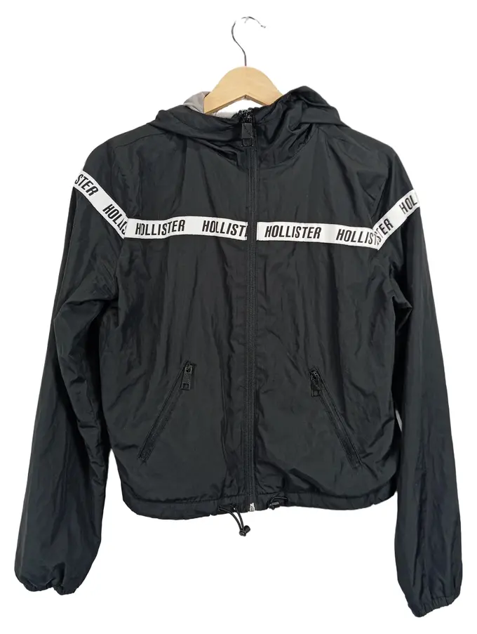 Damen Trainingsjacke Windbreaker Kapuze Schwarz Gr. S