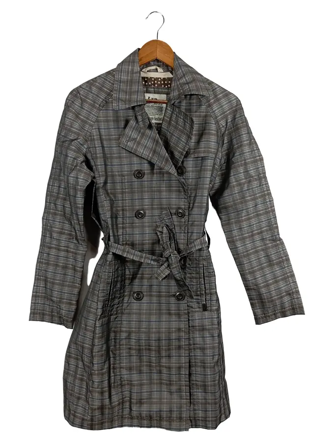 Damen Trenchcoat Kariert Grau Gr. 38/M Polyester Langarm Gürtel