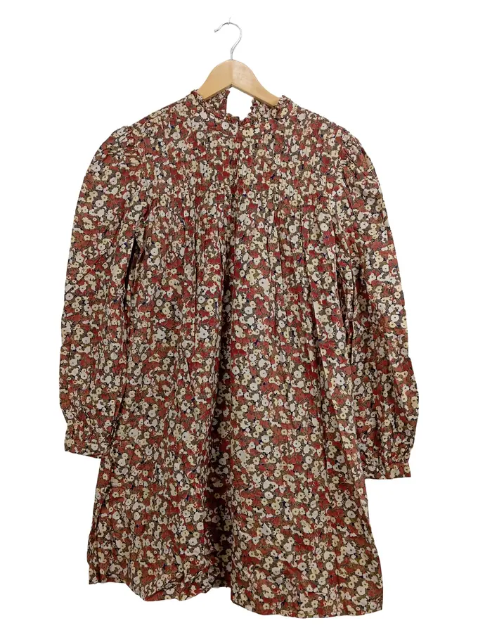 Damen Tunikakleid Blumenmuster Langarm Gr. L Rot Beige